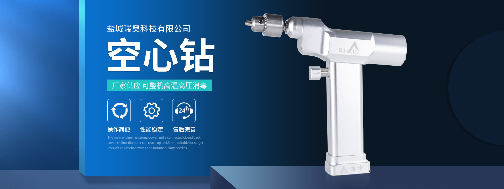 鹽城瑞奧科技有限公司主要產(chǎn)品:醫(yī)用電動(dòng)鋸鉆系列(可高溫高壓消毒和熏蒸消毒兩種):包含骨鉆、擺鋸、胸骨鋸、空心骨鉆、開顱鉆、顱骨銑等等,適用于骨科、腦外科、神經(jīng)外科、胸外科、手足及顯微外科、脊柱外科、整形外科等各種手術(shù)的要求。電動(dòng)石膏鋸可切割高分子繃帶、石膏等?;A(chǔ)器械系列:咬骨鉗,髓核鉗,椎板咬骨鉗,持骨鉗,四肢骨折手術(shù)器械包等。